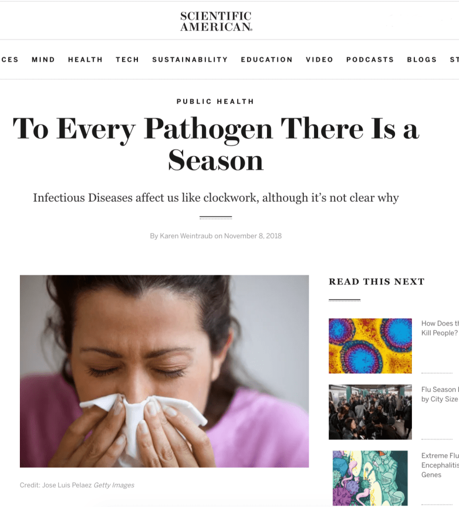 Dr. Martinez did an in-depth interview with journalist Jon Cohen for Science Magazine to discuss infectious disease seasonality and biological rhythms. Click the image below for the article.