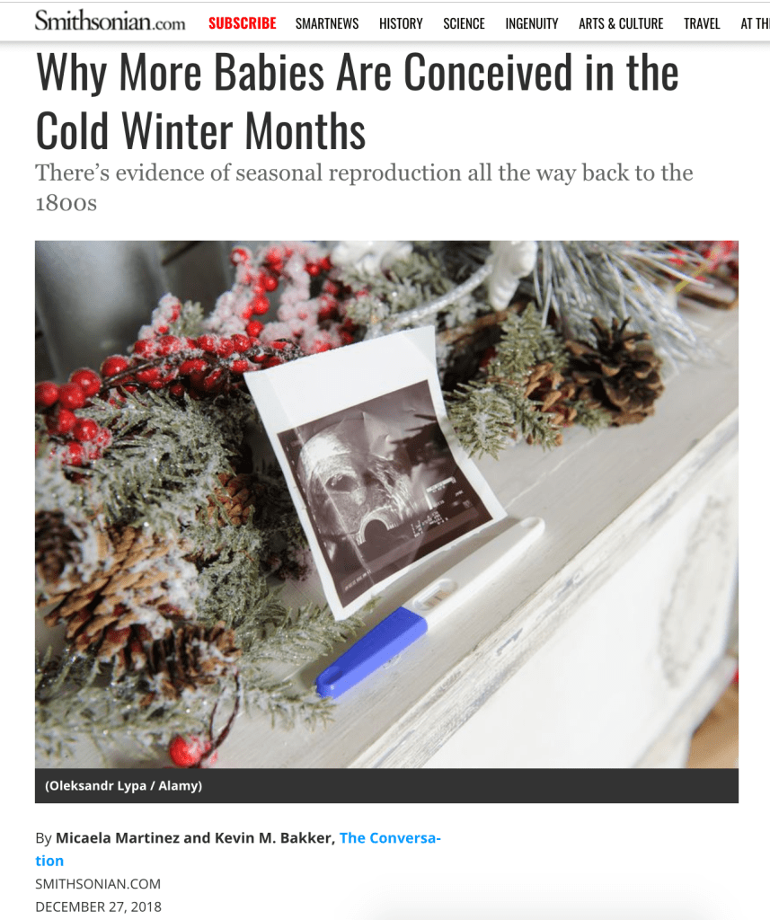 Dr. Martinez and long time colleague Dr. Laura Symul, of Stanford University, had their work on holiday sexual activity and seasonal fertility covered in the UK’s The Guardian. Click the image below to read the article. Our work was also featured in The New York Post.
