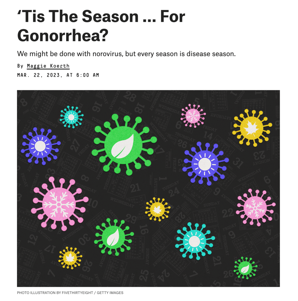 Dr. Martinez had an interview with senior science reporter Maggie Koerth for the data journalism site FiveThirtyEight where she discussed the seasonality of infectious disease. Click the image to read the full article.