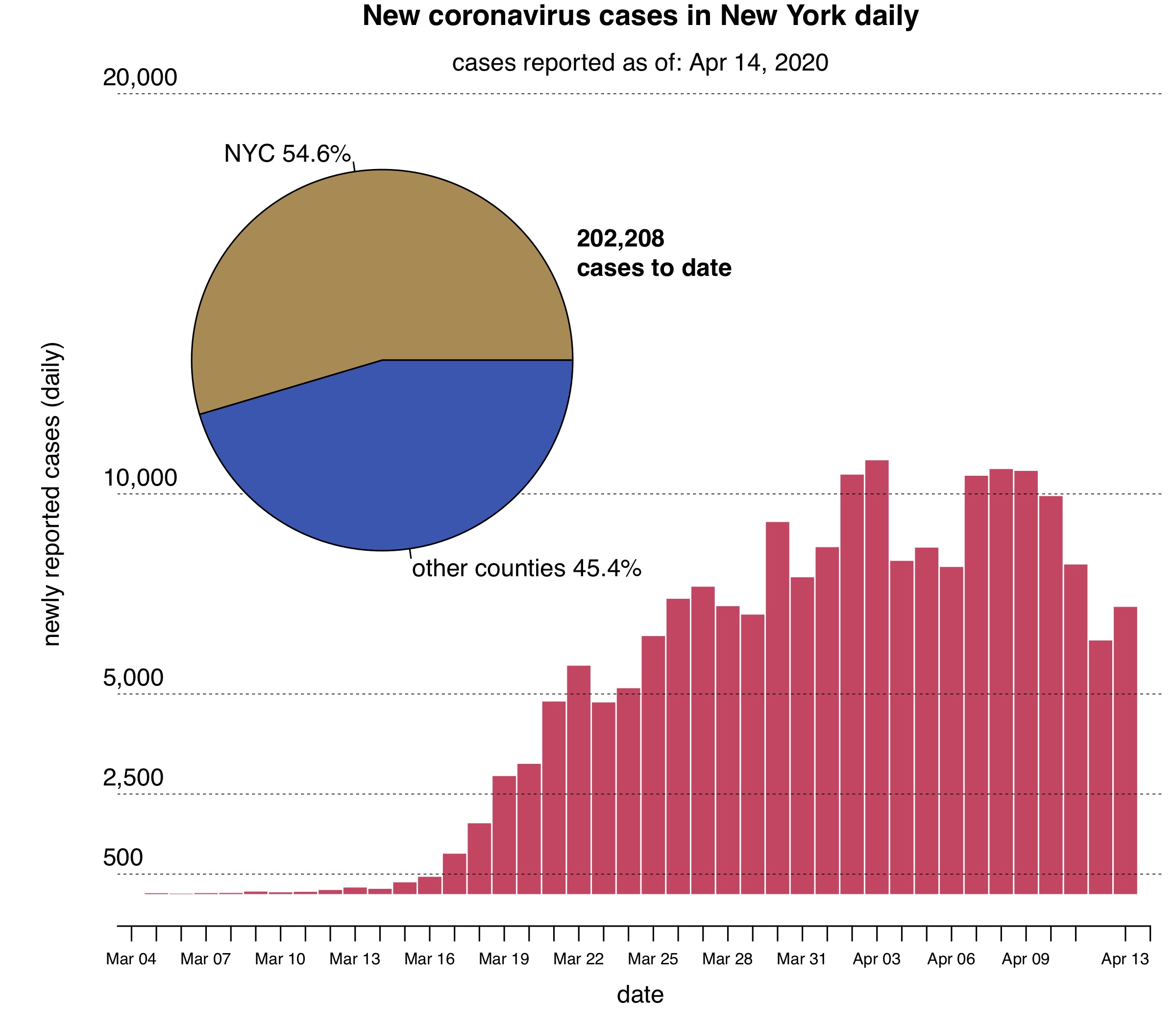 On March 18th I, M.Martinez, began digitizing COVID-19 data from the New York State Department of Health (health.ny.gov) and the New York City Department of Health’s coronavirus page. I will release updated charts here. Please contact me for county-level charts and/or data. Below I list key info from New York state press releases relating to the pandemic, which can be found here: https://health.ny.gov/press/releases/2020/index.htm