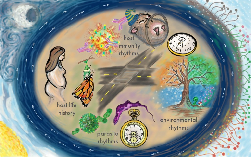 As a disease ecologist, there is a great deal of potential for integrating experimental chronobiology data and epidemiology data to bridge scales for studying rhythms (i.e., bridging individual to population-level and circadian to seasonal-level). Since 2018-2020 I have led an international clinical investigation of seasonal and circadian rhythms in human physiology, we are now analyzing the data from this study and will soon start publishing our findings. Science Magazine created this video highlighting this work.